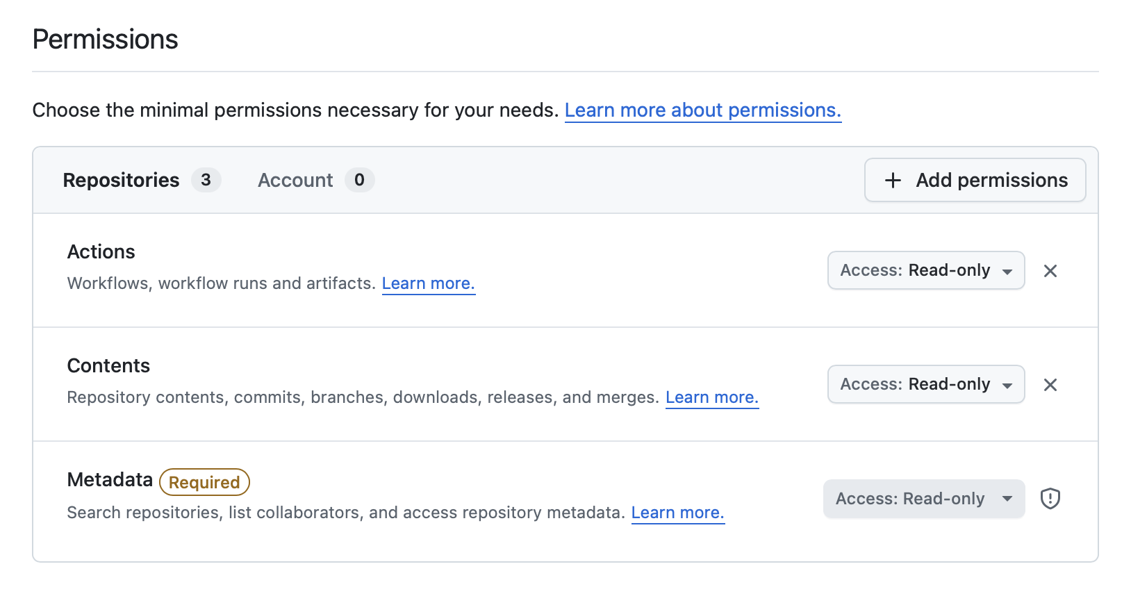 Generate a fine-grained Personal Access Token and set Resource owner to your organization. Ensure the following repository permissions: